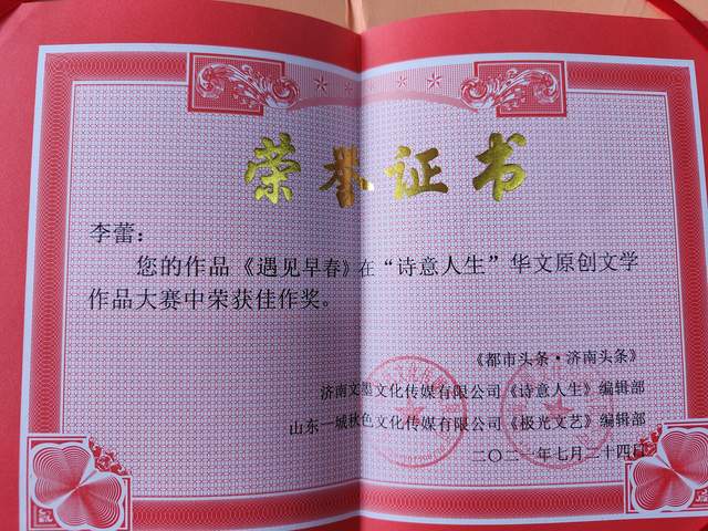 李蕾,本科,2018年参加工作,济南市章丘区曹范学区学校青年骨干教师,山东省“百佳”论文获奖者,酷爱读书写作。2020年,《以生为本,构建“智简课堂”》、《课堂有路导为径》在《语言文字报》发表;《留心观察百花园》在《语文报》发表。2021年,《抓文眼,促阅读》和《在“意外”中收获》在《语言文字报》发表;《叩响童话的大门》在《语文报》发表;《摘星星的孩子》获《都市头条》“党的光辉照我心”中小学师生征文大赛一等奖;另有多篇文章在都市头条、齐鲁壹点发表。指导学生在作文比赛中多次获奖。