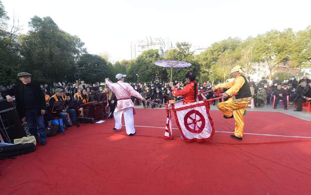 演出人员着装整齐规范,在主持人“恩情似海不能忘,革命成功早回乡,紧紧拉着红军手,四方百姓泪汪汪”的低沉缓缓声中,器乐合奏曲《十送红军》拉开帏幕。