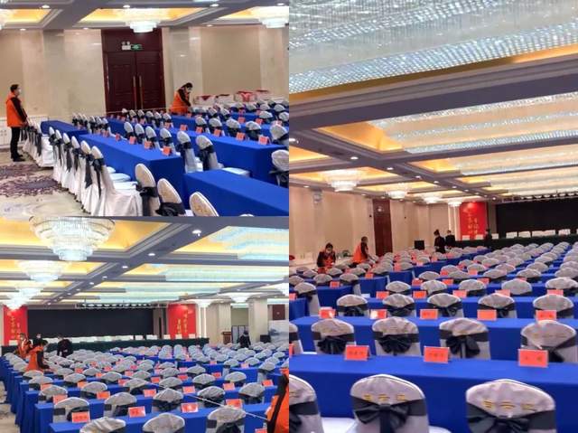 会议中心从主会场到分会场会议室的消毒、台型布置、茶水斟倒,以及设备音响调试和人员指引、会场服务等工作,专门制定了详细的计划,并进行了实景演练,确保“零失误”“零差错”,以保证会议顺利进行。