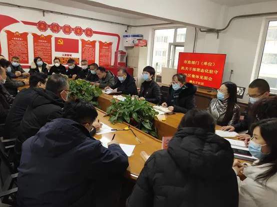 为深入贯彻党的十九届六中全会精神,进一步巩固提升疫情防控成果,深入推进市直部门(单位)机关干部常态驻守社区工作,让驻守干部尽快熟悉社区基本状况并高效率开展工作,1月22日,雁南街道滩尖子社区召集市直部门(单位)机关常态化驻守社区的干部召开集体见面会。