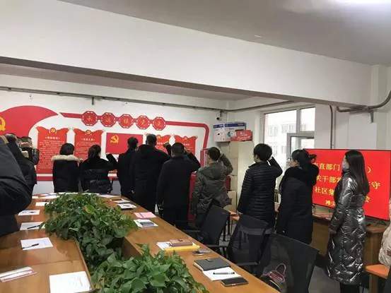 见面会共包含6项议程,一是由社区书记毛蓉同志介绍市直部门(单位)机关干部常态化驻守社区人员情况、组长、副组长,介绍社区基本情况、近期重点工作任务;二是由市直部门(单位)机关干部常态化驻守社区工作组副组长李斌龙同志向大家传达学习了《关于市直部门(单位)机关干部常态化驻守社区工作的意见(试行)》文件精神;三是驻守干部进行自我介绍,简要说明擅长业务和个人特长,并填写了“社工委”资源清单;四是由市直部门(单位)机关干部常态化驻守社区工作组组长王成斌同志对驻守工作提出了要求,并强调了工作纪律;五是大家一起商定驻守干部工作日程安排计划和岗位职责;六是成立了临时党支部,推选了委员、书记,并在临时党支部书记的带领下大家一起重温了入党誓词。