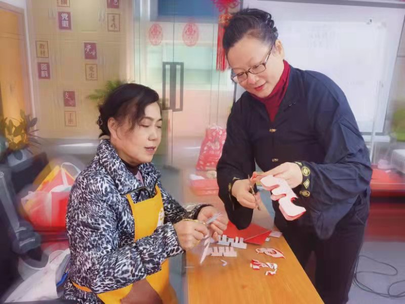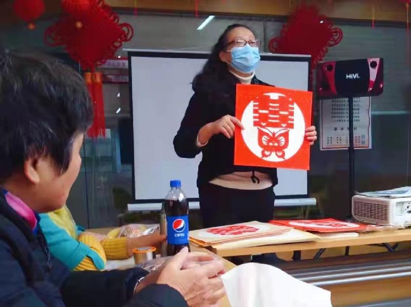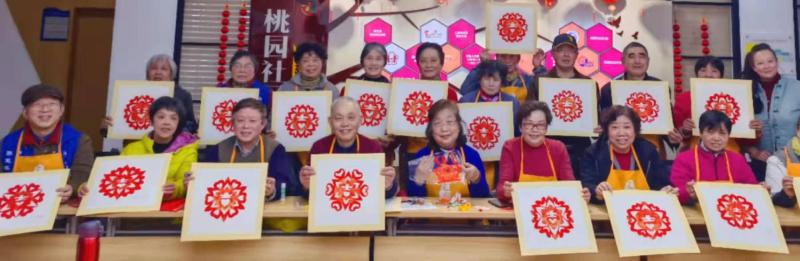 辛丑年的腊月十五日日侧,桃园社区红色邑站会议室,志愿者爷叔、阿姨们济济一堂,在欢声笑语中畅谈学习剪纸艺术培训体会。