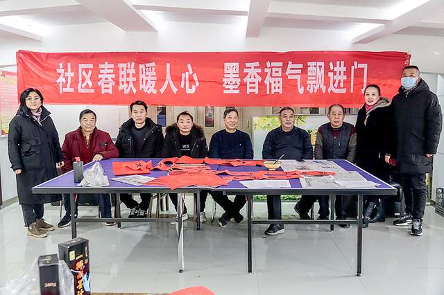 社区居民义务写春联、送春联;传统文化进社区送温暖。 红红火火迎虎年!
