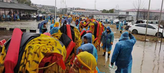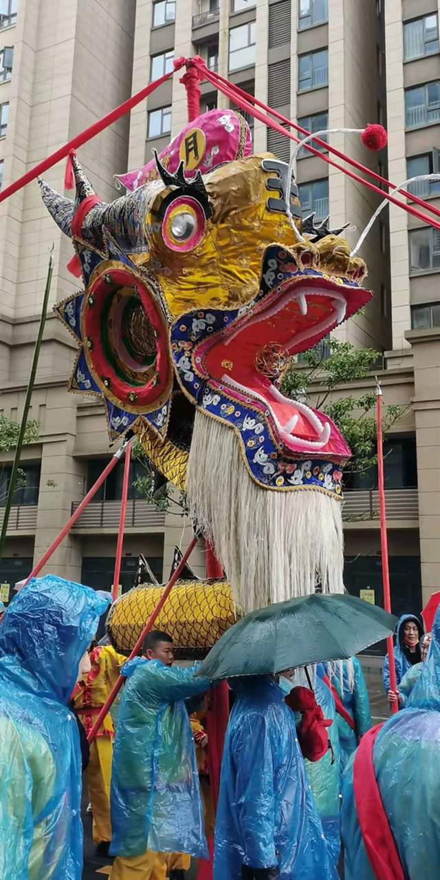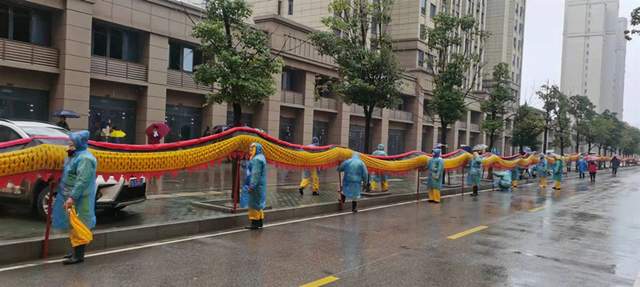 1月26日是腊月24南方小年,天奏奇缘,有龙则灵,雨下个不停,寒风凛冽,数百人冒严寒迎着风雨随百节龙龙头出阵,上百人的锣鼓队、乐队、旗队在前面开道,大队人马浩浩荡荡,7米高的龙头巍然傲立,大展中华龙文化的雄风,几百人在风雨中经过三个多小时的紧张工作,400多米长的百节龙终于合龙并在整条龙上安装了彩灯,沿途受到市民的热捧和点赞。有来省市新闻媒体、自媒体和数十名摄影爱好者跟踪追拍,并现场直播。