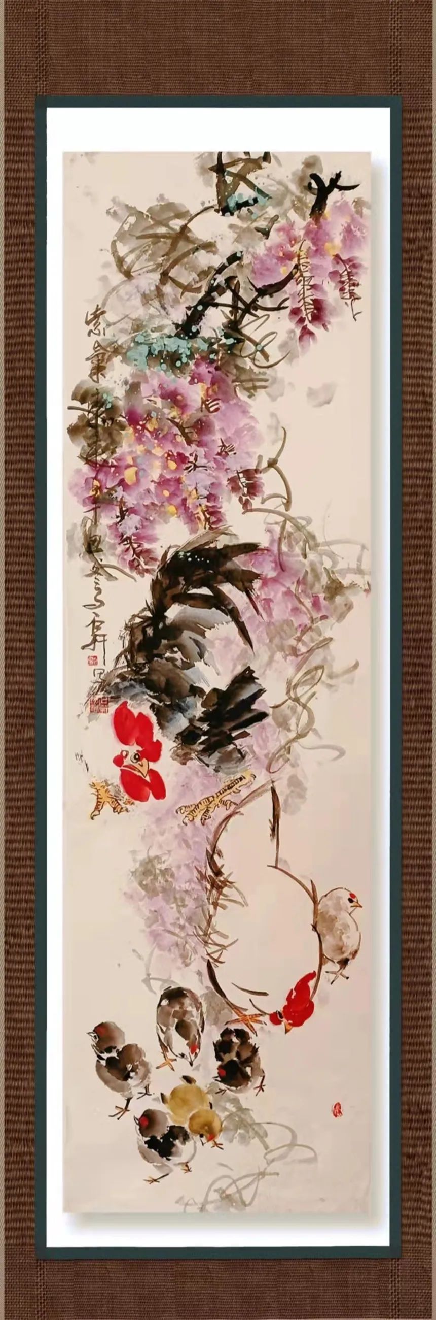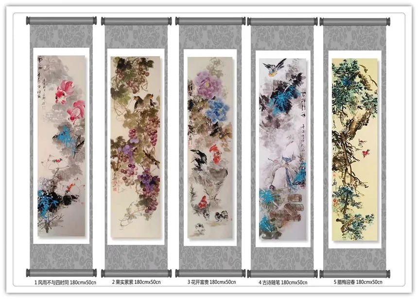 1、风雨不与四时同:是一种动物与植物、生命与自然相和谐的图画,在风水学中鱼 戏莲寓意吉祥富贵、福寿绵延,鱼和莲花都生于活水之中,而活水又代表财运流动,预示着家中将会有财运降临,是大富大贵。 2果实累累:寓意着丰收、富裕、高贵,成串的葡萄,多多益善、紫气东来,硕果累累,多子多福。3、花开富贵:寓意:富贵吉祥,形体高大英武,雄赳赳颇有气概。李贺名句:“雄鸡一唱天下白。”鸡鸣将旦,光明到来。“公”与“鸣”功名仕途康庄来。4、古诗随笔:读《春秋赋》“百家齐放,刹时里贤愚一堂,身材各异,独树一帜,千古传唱,妙言锦句,诗文甲篇兮,多少轶事闲谈中飘荡,飞觞联句,嬉笑间醉意酣畅,云游四海,品滋尝味吟来送往,抚危救难,无私无欲,万里留香有感……,”随笔意写,与看官共勉。5、红梅报春:梅花是我国所有的花中最有骨气的花朵,它被民间作为传春报喜的吉祥象征,是岁寒三友之一,自古以来,人们都赞美她的傲雪精神,她有着孤独不与百花争春的品德。她象征高洁、坚强、高士之人的美德,疏影横斜水清浅,暗香浮动月,唇高风亮节,万物尽难陪。自古承春早,严冬斗雪开。
