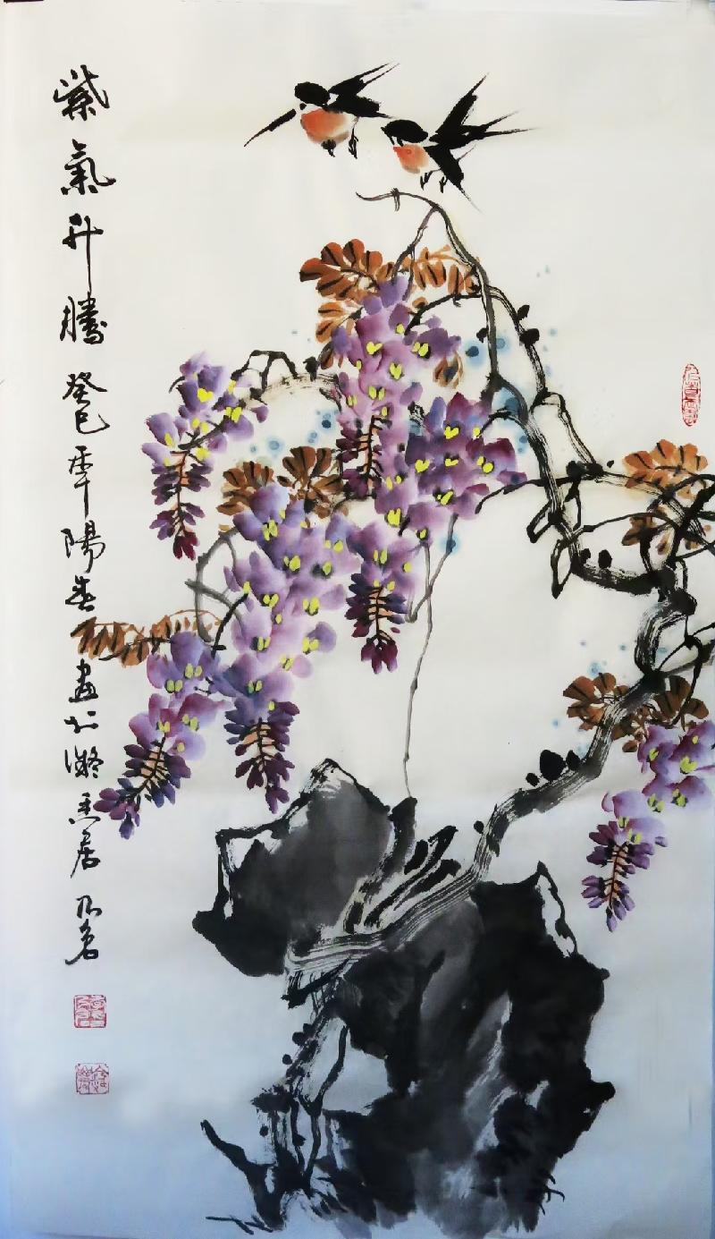 画绘美家乡。