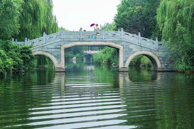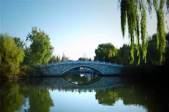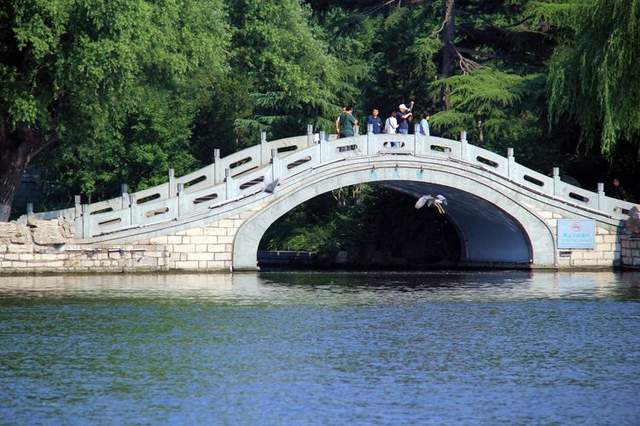 大明湖上的桥特别多,可谓桥桥相连,错落有致。有水就有桥,水域宽阔处是大气的石拱桥,水道狭窄处是精巧的小石桥,也有像走廊一样的平板桥。