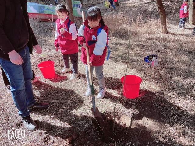 植树造林,保护生态,从我做起。期待孩子们与小树一起成长!
