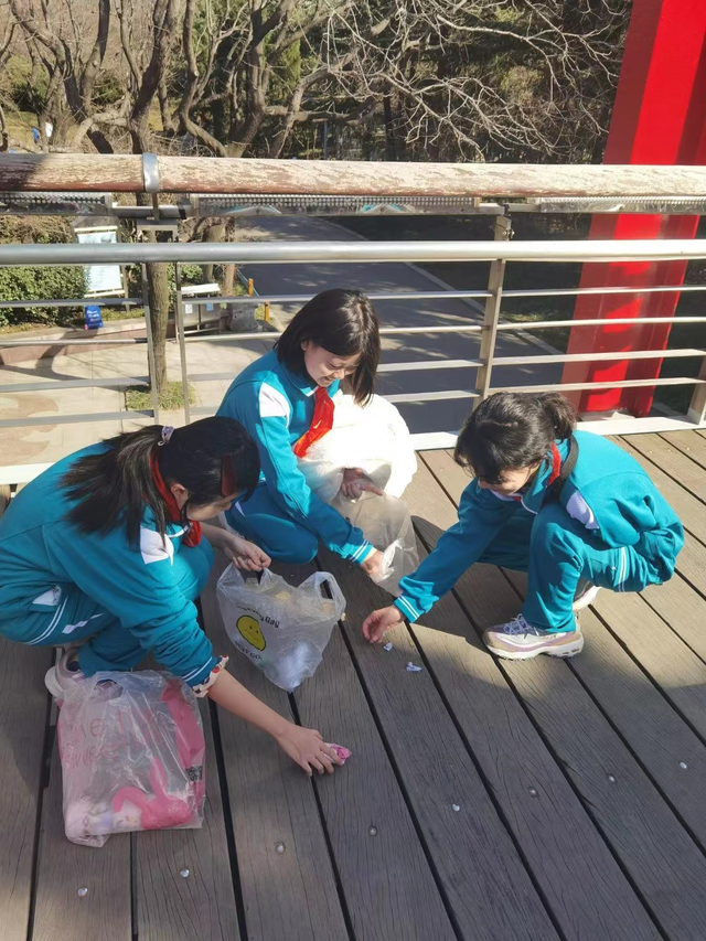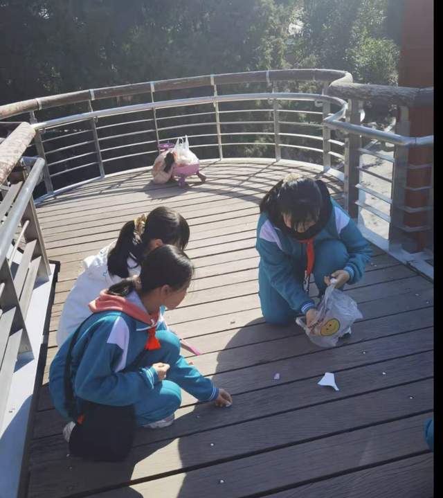 宣誓过后,主题活动在大家的欢声笑语中开始了,因为活动内容较为丰富,在班主任的安排下,大家分成若干小组,并把小组命名为“先锋队”、“悦读先锋队”、“环保先锋队”、“文明先锋队”和“红色宣讲团”等富有创意的活动形式。各先锋队根据队员的优势特点展开了热火朝天的志愿服务活动!活动立即受到了公园、游人、家长们的热切关注和热情欢迎,队员们从大家的眼神中获得赞许,这种鼓励就是对本次活动最高的奖励。在活动过程中,发生了不少让人欣慰和感动的场景: