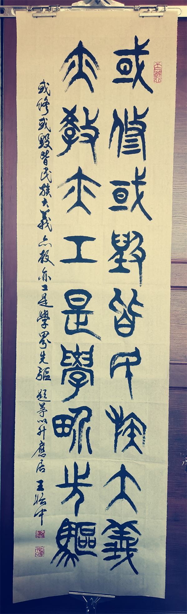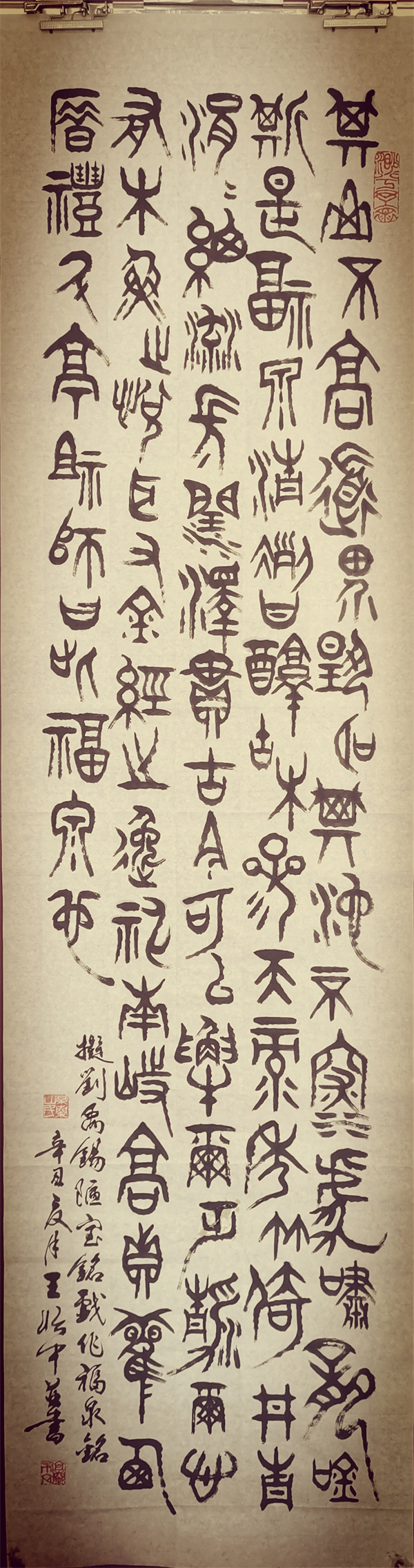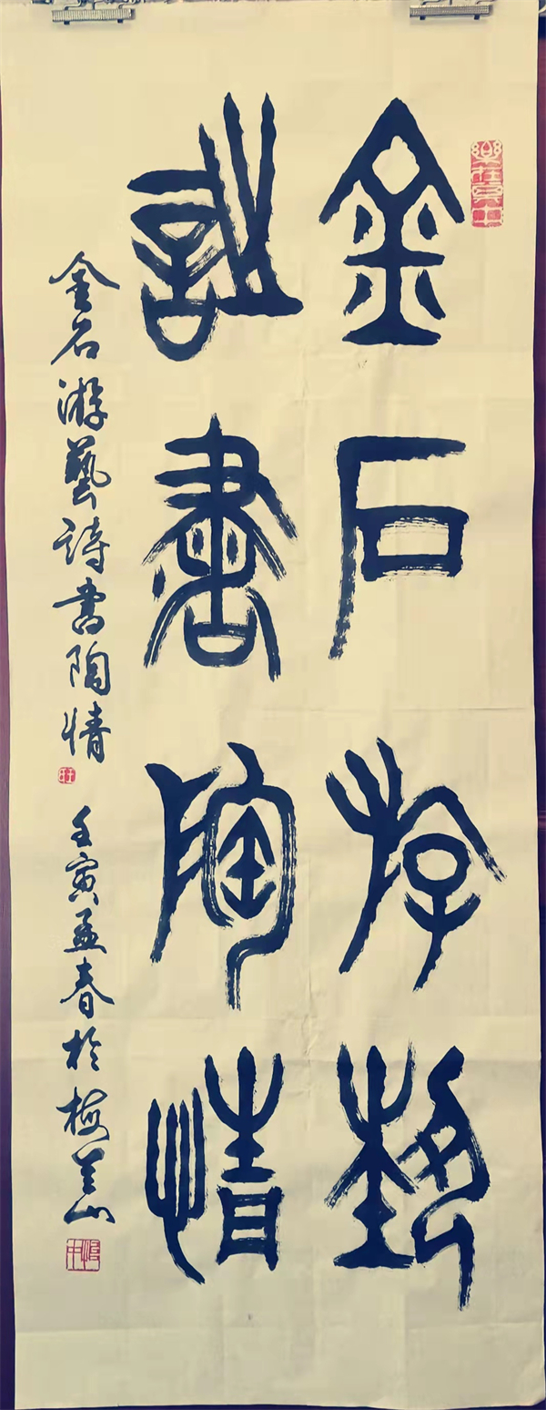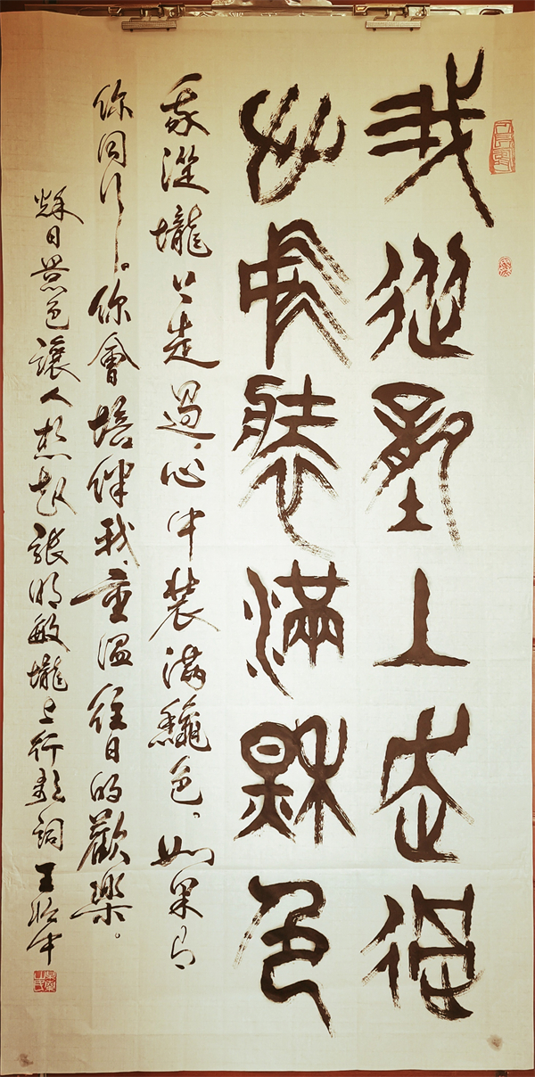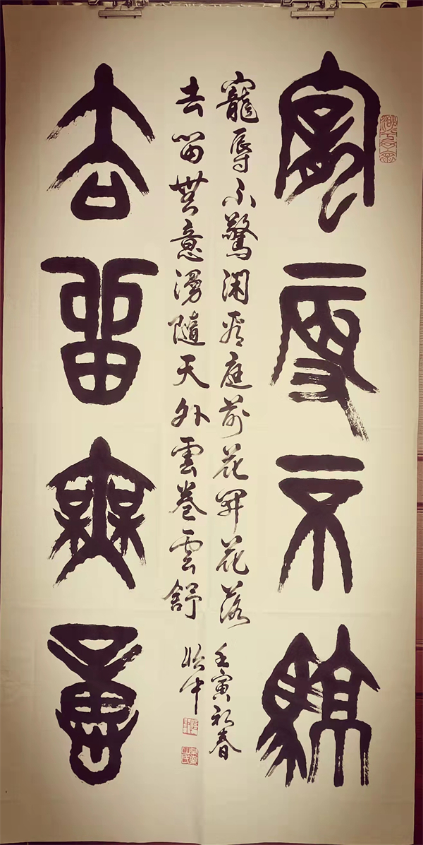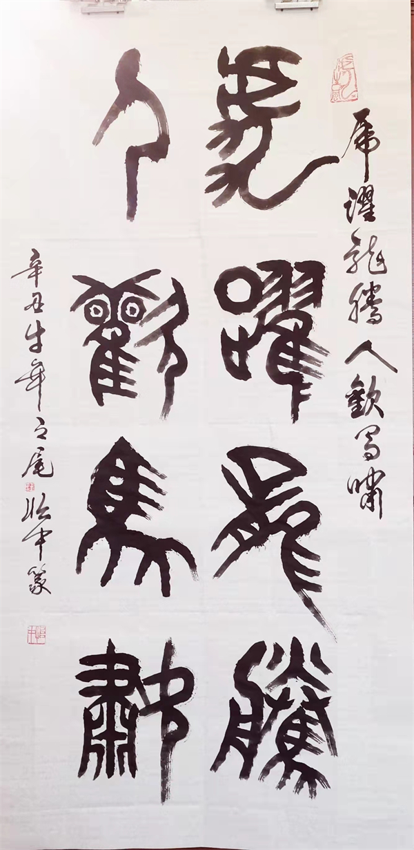 中国龙网贵阳消息 (融媒体记者 韦元龙 摄影报道) 由北京大学未名湖艺术研究所、燕园书画研究院微信公众号和同名的都市头条,中国龙网、窗口网及其都市头条,中国龙美术馆,滴水清华、未名湖文学社微信视频号,翰墨燕园好看视频号、快手号等13家媒体联合发起的“新时代中国百名创新艺术家作品展示”活动已经开展了两年时间,目前已经有20多为书画家闪亮登场。虎年初春,记者探访了贵州书法界的老艺术家王怡中先生,其古篆体书法及其篆刻作品苍劲古朴,笔走龙蛇,虎虎生威,浑然天成,让人返璞归真,悉心励志,百看不厌,爱不释手。现将他的作品公诸于众,望广大书法爱好者和收藏家批评指正,品鉴收藏,并积极参与到活动中来,让中国千年传统文化能够得到有效的传承发展,发扬光大。王怡中先生联系电话:13985786705(微信同号),融媒体记者韦元龙联系电话:13985988777(微信同号),对本次活动以及艺术家的作品有不同意见和建议,请及时互动,建言献策,集思广益,臻于至善。