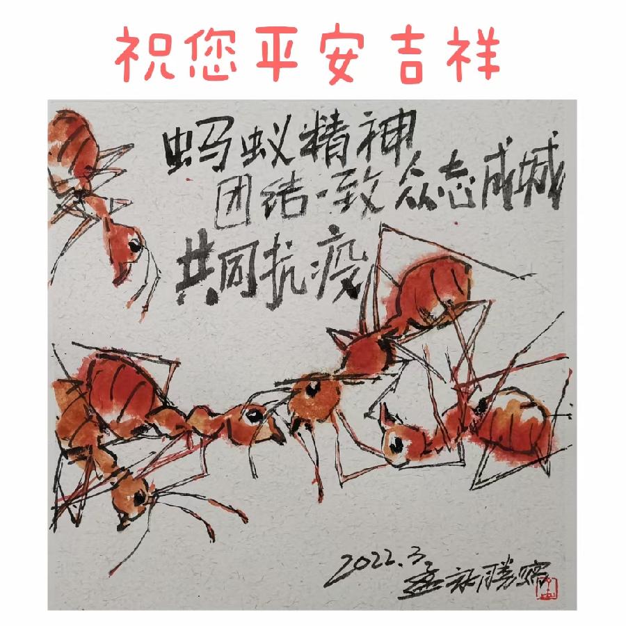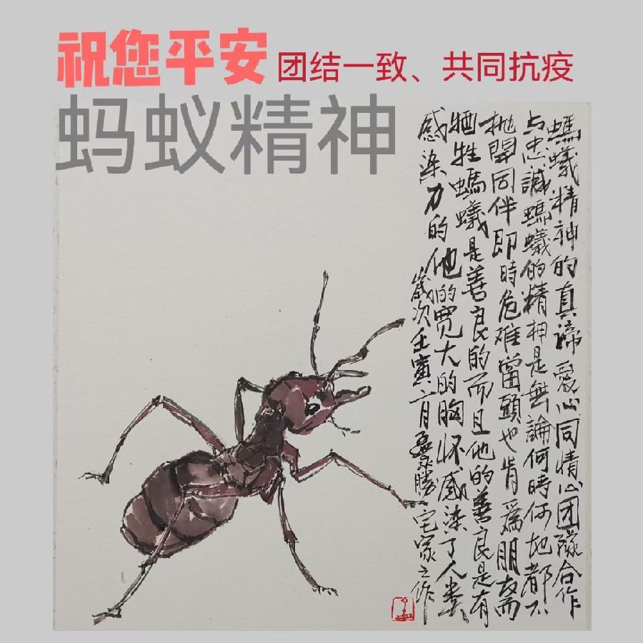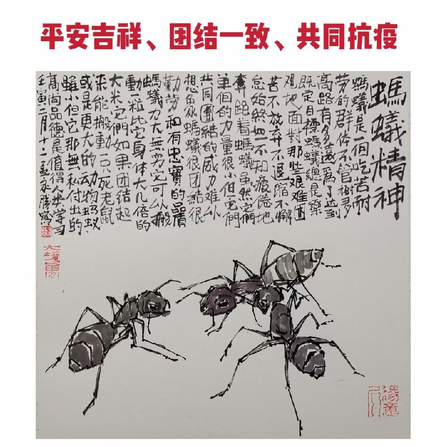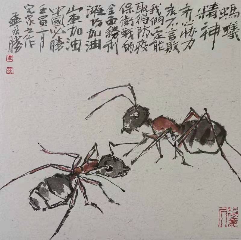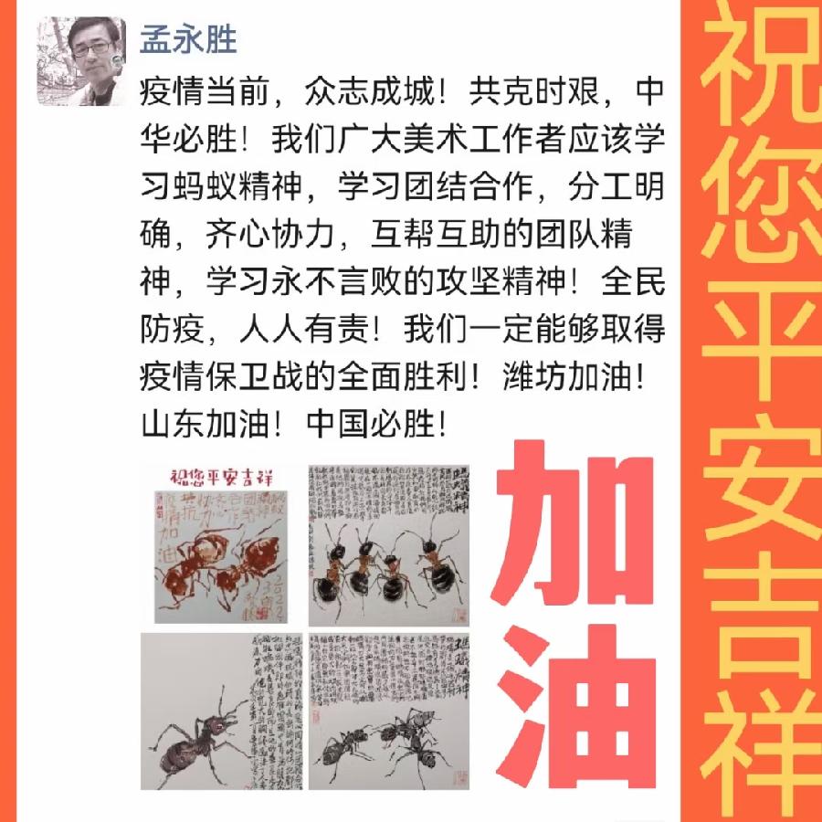 潍城区美协主席孟永胜创作的《蚂蚁精神 共同抗疫》作品欣赏