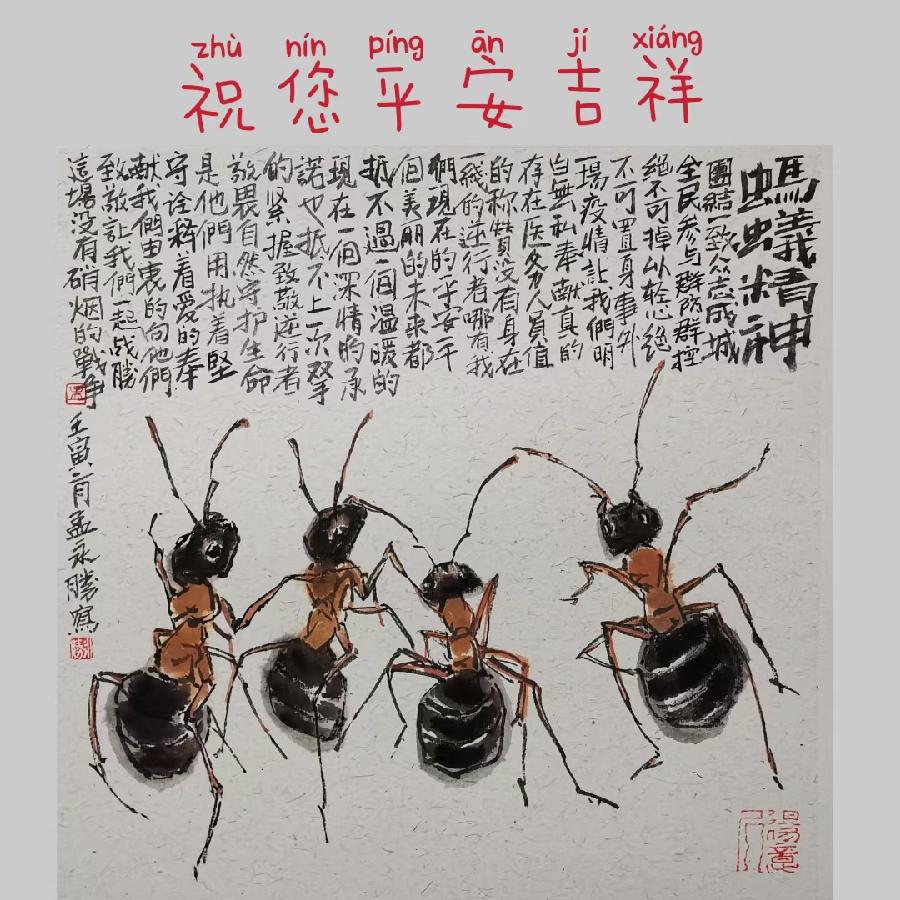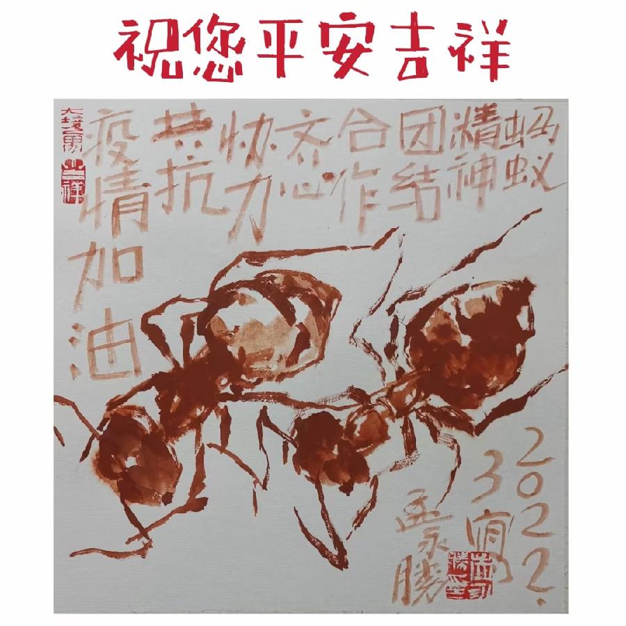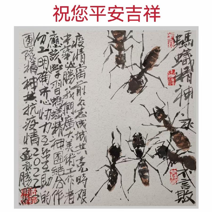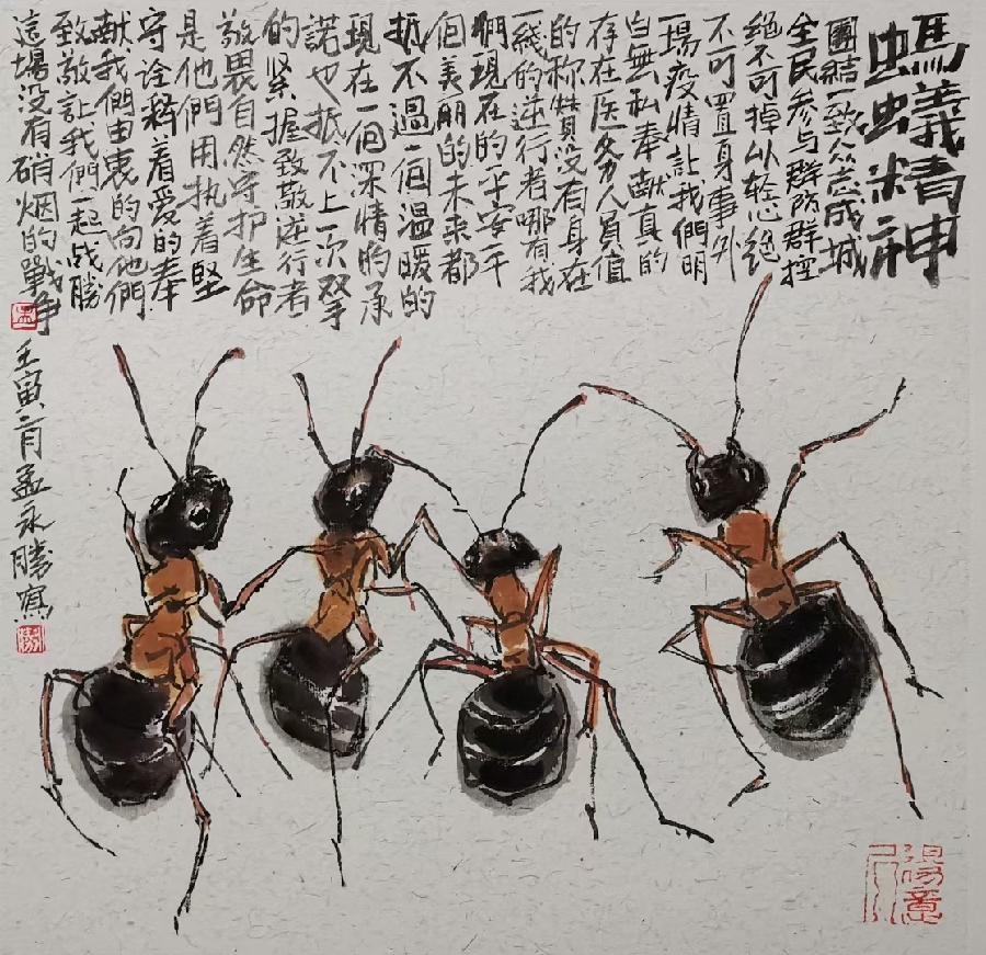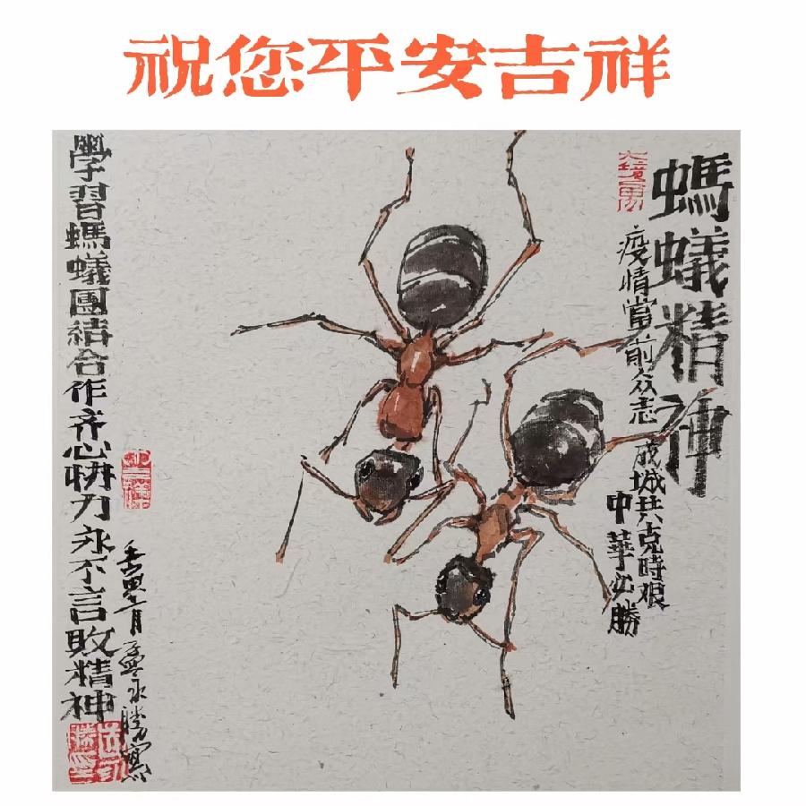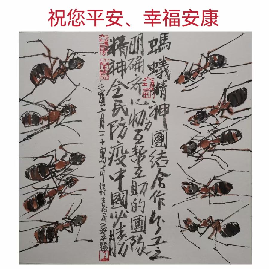 潍城区美协主席孟永胜创作的《蚂蚁精神 共同抗疫》作品欣赏