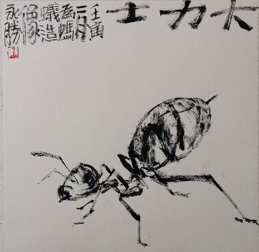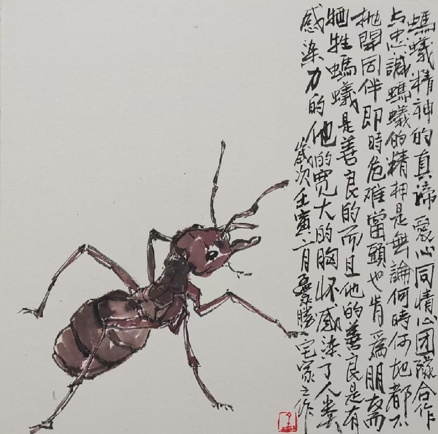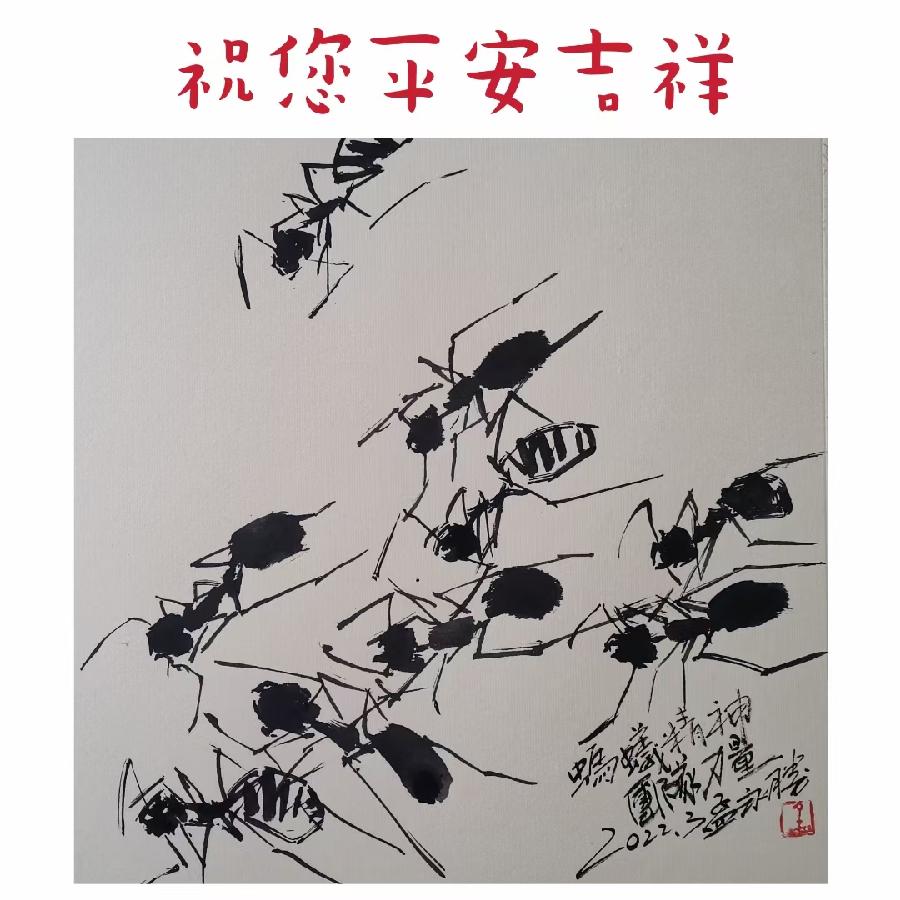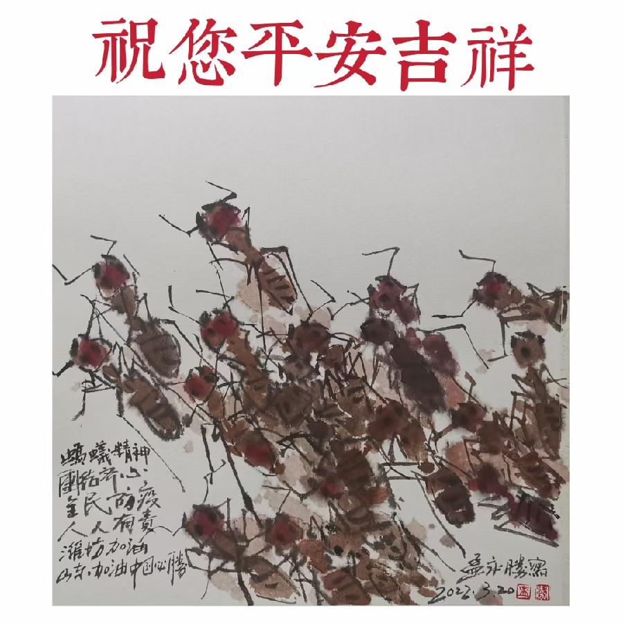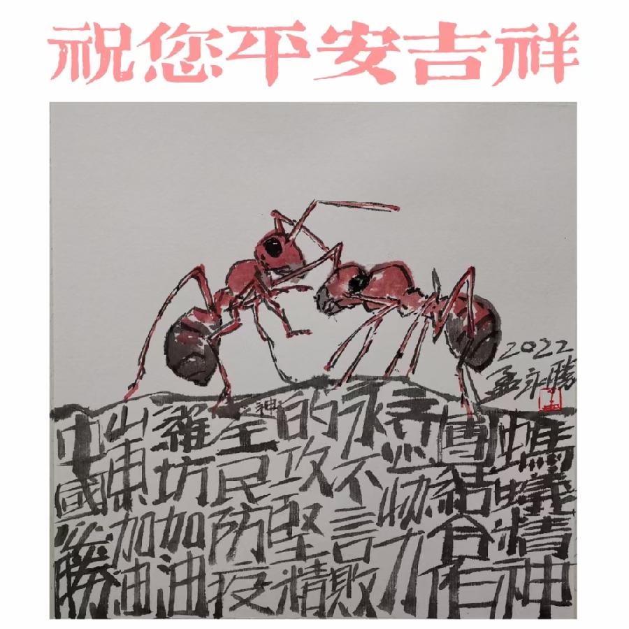 潍城区美协主席孟永胜创作的《蚂蚁精神 共同抗疫》作品欣赏