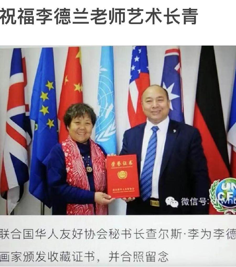 李德兰,女士,1948年出生在北京,现为中国书画艺术收藏网会员、中国乡土艺术协会文化产业书画院副院长、中国书画艺术研究院高级研究员及副院长、中国书画院院士、中华人民共和国文化部及中华人民共和国文部办中国诗酒诗书画院画家、中国现代文艺书画院艺术委员会会员中国老年书画研究会研究员、江苏岳飞文化研究院副院长、北京市宣武区美术家协会会员,李德兰中国诗歌学会会员。联合国书画院特聘李德兰女士为联合国书画院院士,中国大公新闻报业集团艺术总监,大公书画院院长。其作品先后被北京电视台著名节目主持人王旭东、王芳中央电视台著名主持人朱迅著名导演英达、少年歌手阿尔法,中国现代文艺出版社书画院中国诗酒书画院中国书画艺术研究院、中国书画院、中国人民解放军总参谋部,巴布韦驻华大使馆、马拉维驻华大使馆和尼泊尔驻华大使馆收中国李德兰的牡丹图排第一,2010年完成一部百米长卷,估价两万块钱。