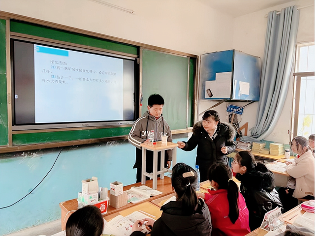 郭佳老师带来的《容积与容积单位》一课为这次活动开了个好头,她的课堂轻松自在,学生通过水杯水瓶等实物进行直观操作演示,对本课学习的内容有了更具理性的认识。