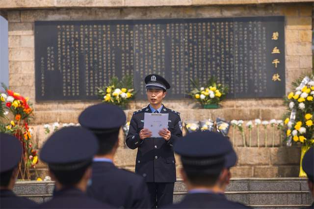 祭奠仪式上,民警代表用铿锵有力的声音朗诵了革命诗歌《咏抗战》《缅先烈》。