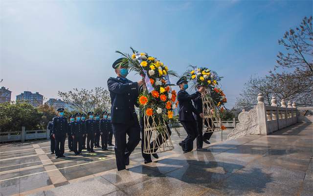 为弘扬英烈精神、传承红色基因。4月2日,在清明节来临之际,长航公安局黄石分局机关二支部、武穴派出所党支部、黄冈派出所党支部前往武穴市烈士陵园,开展瞻仰烈士纪念碑,缅怀革命先烈祭奠活动。