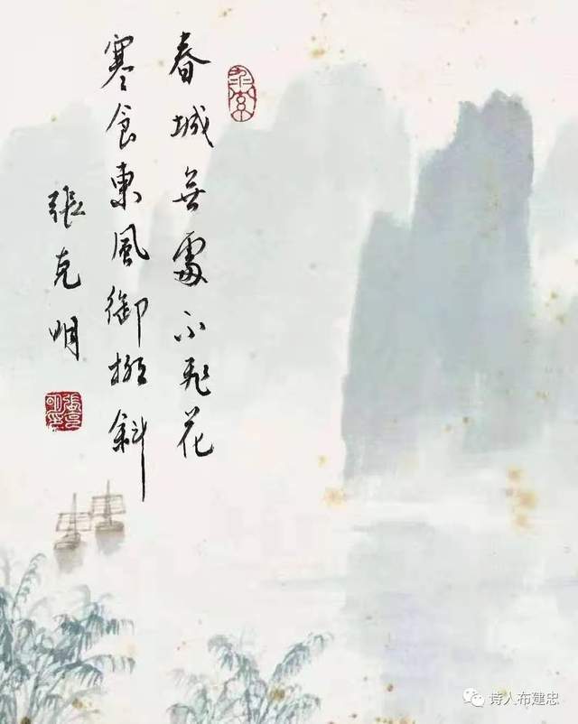 注1:张克明先生是我的一位兄长和挚友,也是教育界资深的教师。曾先后担任过市区两级教育系统的领导职务,酷爱诗词及书法,追求淡雅严谨,修身养性。张克明先生以古诗词为主要内容,在淡雅的画面上,创作了许多新作品。细细品味,别有一番神韵。倍感克明先生致力于中国传统文化继承与传播的良苦用心,特别对古诗词和书法的普及发挥了积极推动作用。