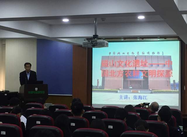 为了宣传磁山文化,张海江成了第一个走进大学讲堂的乡村学者。2017年10月10日晚19:00,应中国农业大学资源与环境学院郝晋珉教授邀请,在中国农业大学资源与环境学院,为广大师生作了学术报告——《磁山文化遗址——中国北方农耕文明探源》。报告会由郝晋珉教授主持,国家土地整治中心副主任郧文聚研究员、中国农业大学王数教授、王健副教授等出席,百余名研究生参加了此次报告会。