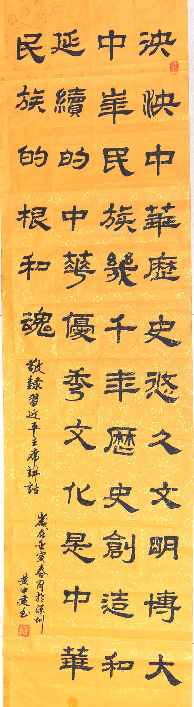 自幼受“父亲黄伟”的教育和薰陶。本人从小喜爱中国传统文化,勤奋好学,长期研习黄庭坚碑帖,勤耕不辍,研习二王、张迁碑、史晨碑、魏碑。并师从现代田英章和徐志存老师。逐渐形成个人书法风格。近年来,多次受邀在全国展出书法作品,并受选刊于中华人民共和国文化部,旅游部,文联主管的“艺术市场”和“一代巨匠”“央视文化艺术”,等书刊杂志;百度网媒入“中华英才网”“人物风采”书画百度,百科网媒体。并受到广泛好评和爱好者收藏。