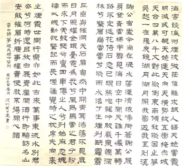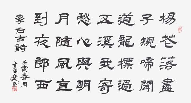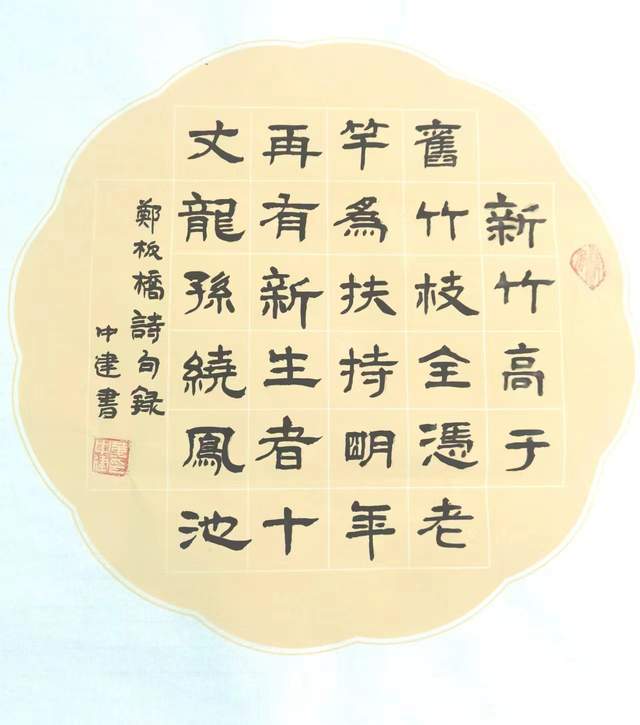 黄中建的书法能够求变、求新,在于他有较高的品格境界和与时俱进的思想意识,能够在谦虚做人,勤恳做事,热心社会公益事业,潜心学习的端正心态上去用真情表达其艺术语言。纵观黄中建作品,苍茫中透着灵动,古意盎然而又不失创造性,沉着干练而又摇曳多姿,秃笔枯墨也未阻其技法的展现。他学古但没有迷古,而是古为今用,古为己用,秉承艺术的自然美法则,在法度严谨、古意盎然中体现其活泼个性,给人一种强烈的视觉冲击。深心托毫素,怀抱观古今。黄中建所写《秋日杂诗。霜日普无精》、《钱塘湖春行》、《茶缘》等谋篇布局灵动疏朗,字里行间内蕰劲健,浓淡枯涩不显冲动,给人不事张扬,意思清明,心气平实,飘逸灵动之气。这正如东方树曰:“先以气胜得之者,精神灿烂,出之纸上,意嫩则浅薄无神,不能书画。”所以,黄中建的每一幅作品都线条坚韧,如棉里缠铁;点画蕰藉,刚柔相济;法度严谨,内涵丰富,那符合法度 的结体及开合有致的章法,充分表达出他与书法之间的那种毫不造作的融洽与神合。