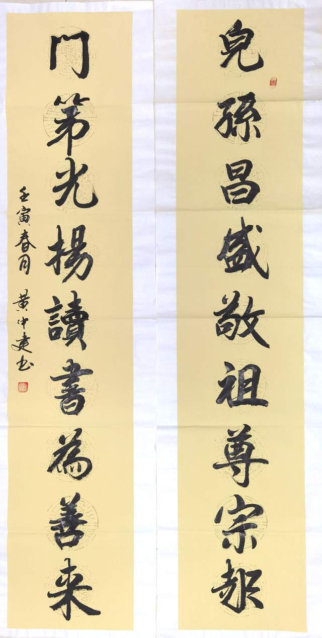 黄中建自幼受到家庭良好的教育和熏陶,父亲黄伟是解放初期的全国劳动模范,曾受到朱德,刘少奇,陶铸等领导的亲切接见。黄中建自幼喜爱中国传统文化,特别对书法情有独钟,几十年来,临池不辍,二王、黄庭坚、张迁碑、史晨碑、魏碑等精研熟读,并师从现代田英章和徐志存老师。书法以金文立骨,以汉隶为筋,取法自然,聚万变于笔端,散大艺于天地,相生相融,形成独树一帜的艺术风格。
