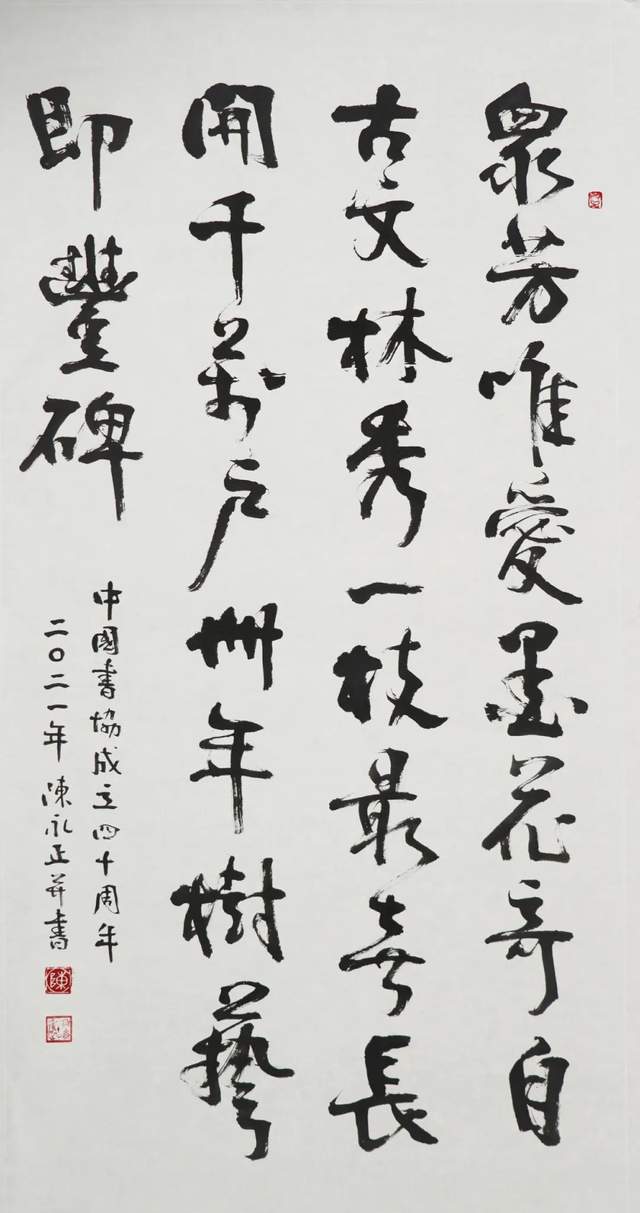 值此新年来临之际,我们特别邀请本届名誉主席、顾问、主席团、理事,挥毫泼墨,共贺新春,共庆中国文学艺术界联合会第十一次全国代表大会胜利召开,共庆中国书法家协会成立40周年!