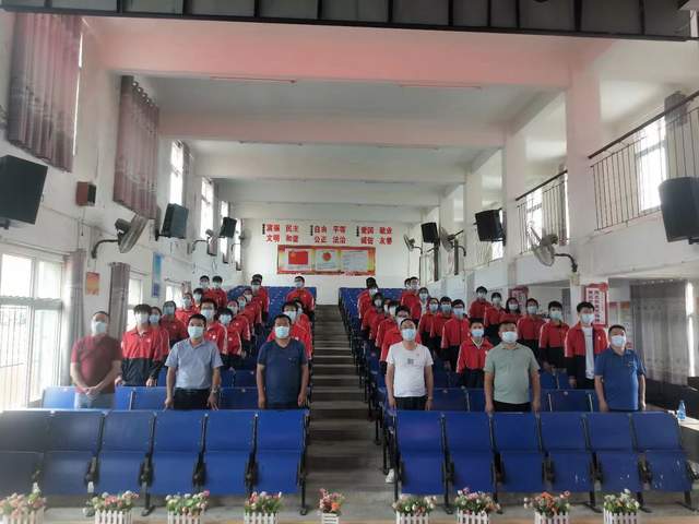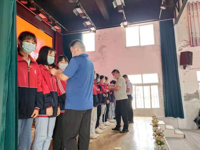 党员教师和入党积极分子完成主题党日议程,随即来到阶梯教室,全体师生起立,奏唱国歌,在庄严的国歌声中,段店中学新团员入团仪式正式开始。首先,仪式主持人熊静老师宣布新团员名单,38名团员依次站上主席台。