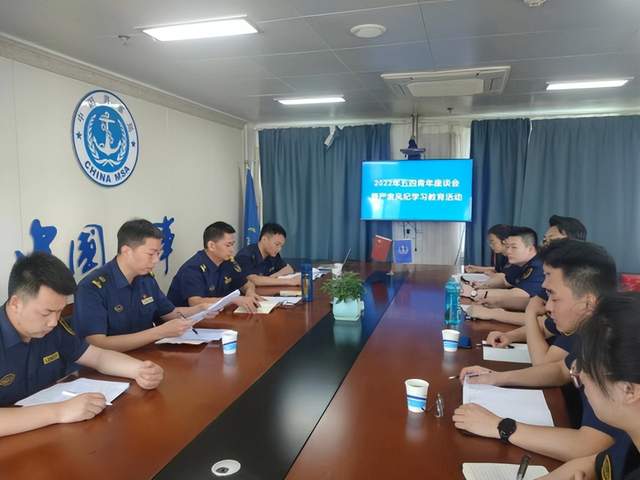 2022年5月3日上午,黄冈海事处团支部组织全体青年同志在巴河大队开展座谈,围绕“庆祝建团百年 青春献礼二十大”积极讨论,黄冈海事处党支部胡学东政委、宣传委员刘珅同志参会指导。