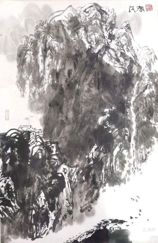 昨天还有一段小插曲。在场的华鼎升先生年轻时曾在市少年宫学习摄影,与在市少年宫工作的纪振民先生多有接触。昨天,他把45年前收藏的纪先生的一幅作品带到现场,当时只钤印未题款。纪先生补签并加了台阶和飞鸟。那时,纪先生的画作还有孙克纲先生的影子,几十年过去了,纪先生己形成了自己非常强烈的艺术个性,确立了艺术高度,广受赞誉。这幅画也是恩师纪先生在艺途上的一个足迹。我记录下这个场面,也留下一份启迪。