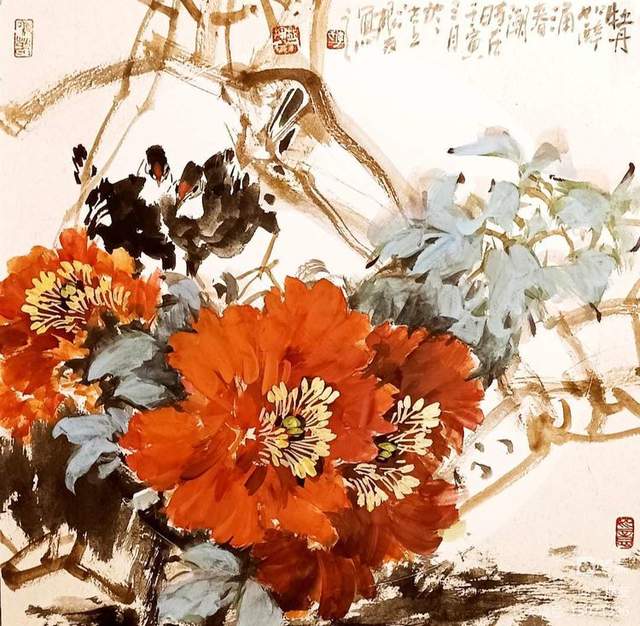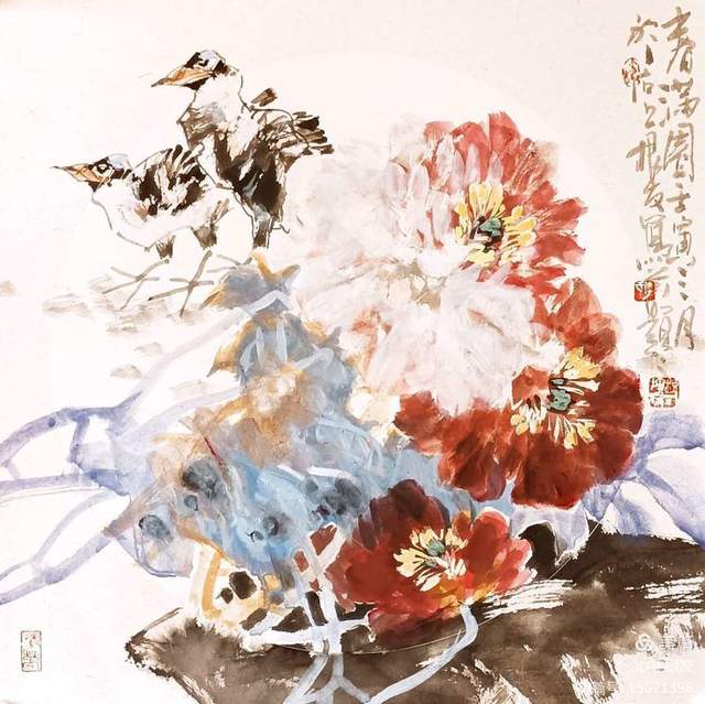 所以他潇洒灵动的笔触间,滋生出一种别样的浑然大气。笔耕不辍,几十年如一日地在传统绘画领域研究、磨练,努力塑造鲜明的个人面貌,终了找到一条适合自己风格特点的“色彩明快、笔墨凝重、收放并蓄、雅俗共赏”的画风,深得同行赞誉和认同。通过笔墨抒写出自己的情感志趣,并体现时代精神。这也就使得他画的花鸟画,不媚俗、不做作、不矫情,走雅路、走文气、走和气,是迎合时代的花鸟画,也是老百姓喜欢的花鸟。“根有鸟”的艺术符号已是在肯定他在天津花鸟画坛中的艺术水平。