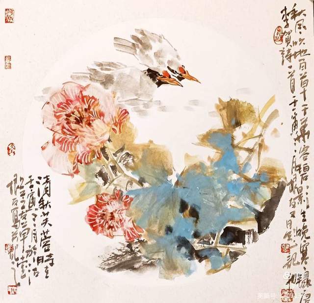 李根友老师说:聊起小写意花鸟画,在全国范围来讲,还得看天津。天津花鸟大师孙其峰先生,他的学术在全国的影响力是巨大的,威望很高。画家都是在吸收和借鉴中创造自我,是一个兼收并蓄的过程。