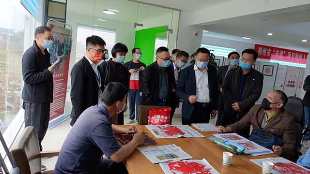 在市残联党组书记、理事长项国兴以及鄂城区、市财政局、人社局、税务局分管负责人的陪同下,副市长邱实兴致勃勃地参观欣赏了残疾人朋友的雕花剪纸作品,并亲切地与在现场残疾艺人进行了交流互动。