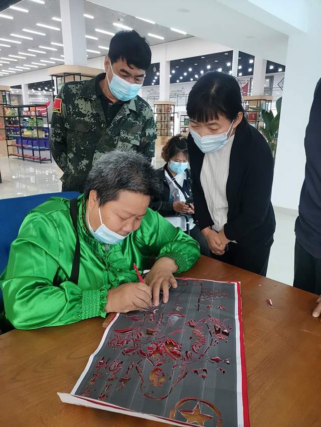 副市长邱实对他们自强不息的精神发出了由衷赞叹,艺人们深受感动和激励,残疾人戴钰大姐热情地向与会领导和参观者介绍了学习雕花剪纸技艺的心得。