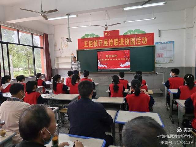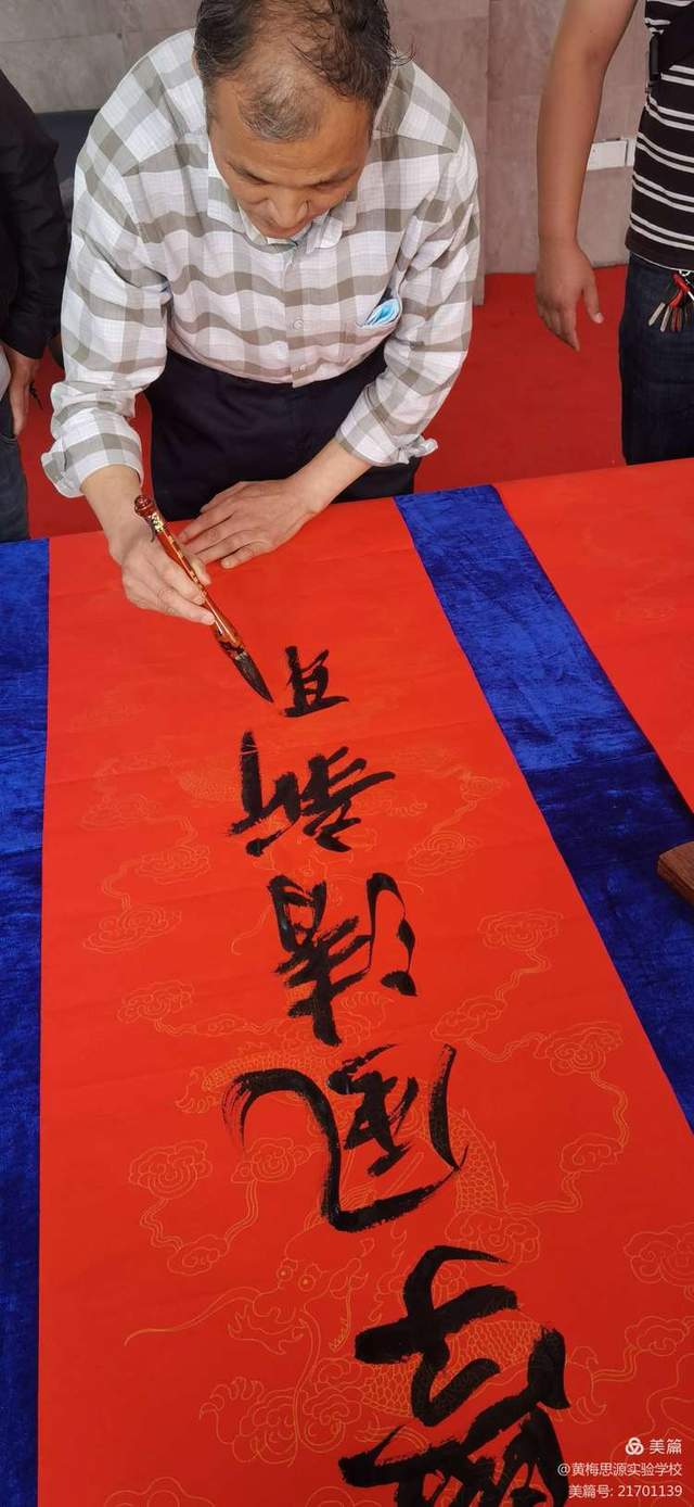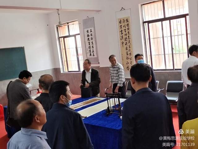 为弘扬中华优秀传统文化,进一步推进校园文化建设和国学经典教育,促进中华楹联艺术的普及和提高,5月13日,黄梅县楹联学会会长张贵球,名誉会长柯玉松、常务副会长王水柱等一行专家领导莅临黄梅思源实验学校开展楹联文化进校园“四进”系列活动。五祖镇副镇长程凯峰、五祖镇教育总支书记崔金江、黄梅思源实验学校校长章俊松、五祖镇东山诗联分会部分会员陪同参加。