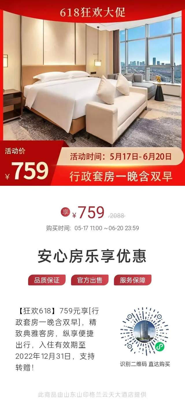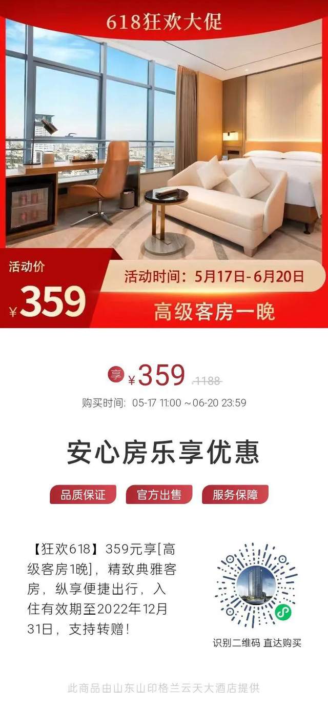 酒店近期推出“安心房乐享优惠”活动: