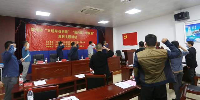 会上,按照支部主题党日“3+X”模式进行,全体党员奏唱国歌、重温入党誓词、宣读《党章》等仪式,传达学习了《中共鄂州市交通运输局直属机关委员会关于调整非公企业党建联点共建工作的通知》、《关于印发<鄂州市交通运输行业2022年度创建全国文明典范城市工作实施方案>的通知》(鄂州交运函[2022]35号)文件精神。
