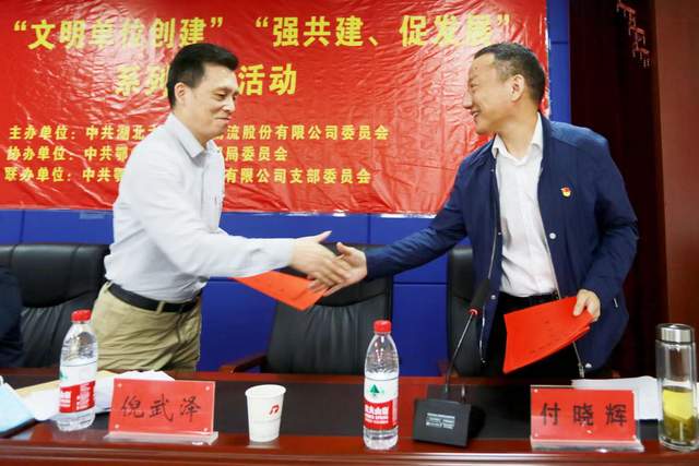鄂州市公路局党委委员付晓辉与大通公司党委委员倪武泽签订了《党建联点共建协议书》。