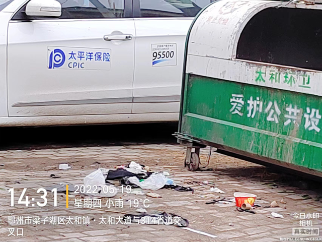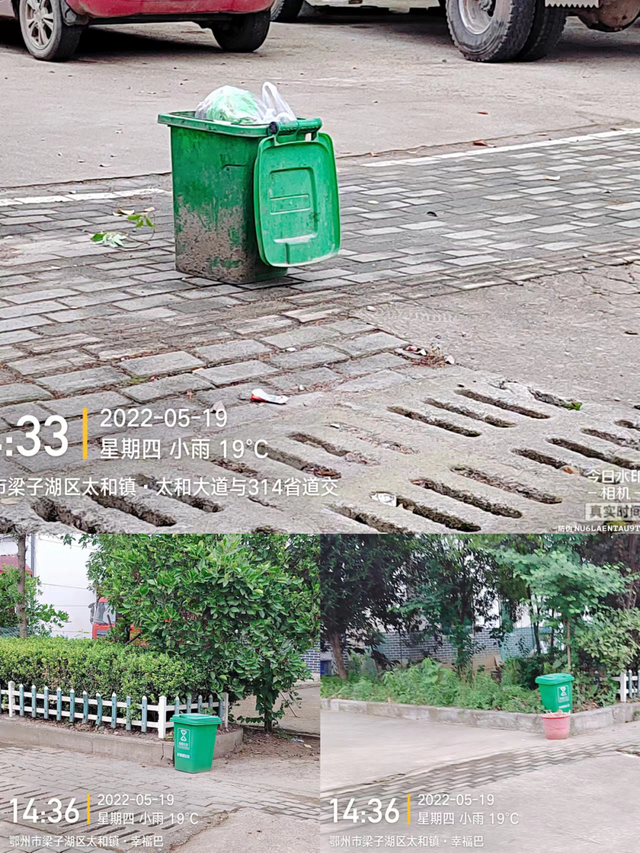 314省道靠近子坛路段多处垃圾桶摆放不规范、垃圾清运不及时