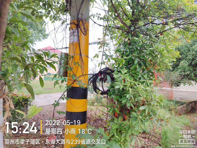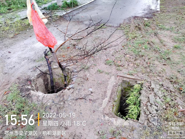 东湖大道靠近加油站处有缆线垂落、窨井盖缺失