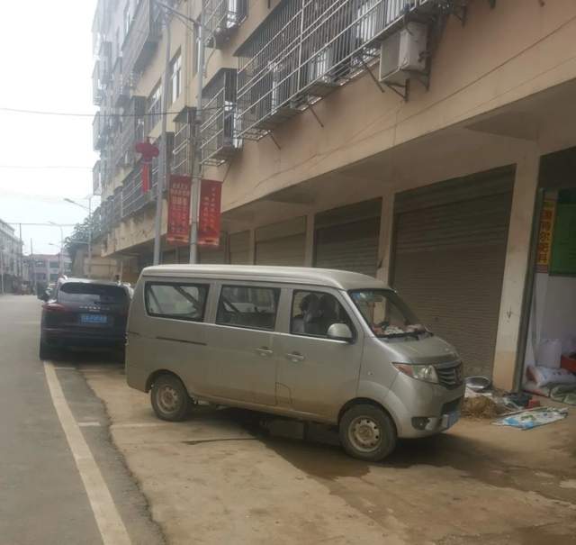 314省道与建设路交汇处居民楼前车辆乱停靠