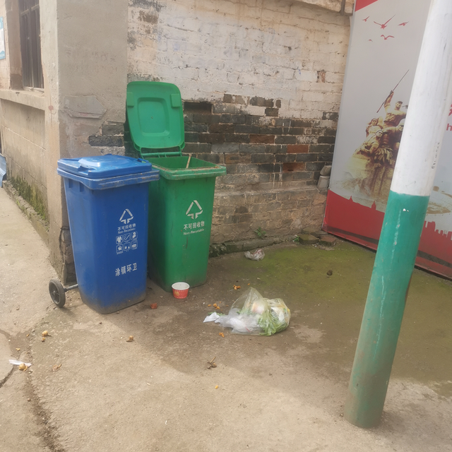 柯畈路段垃圾箱脏污、垃圾未入箱