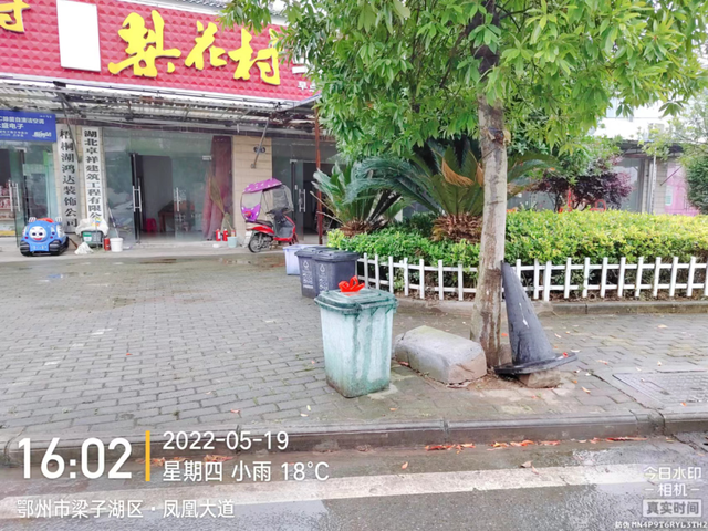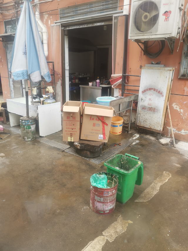 六十路口店铺门前垃圾桶脏污、垃圾桶摆放不规范、有杂物堆积