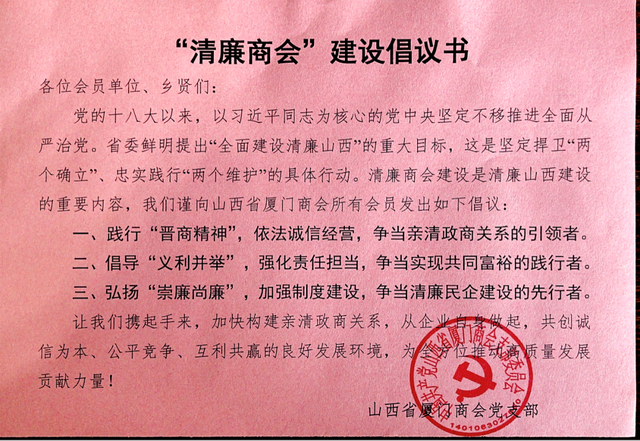 应山西省工商联通知要求,根据山西省委《关于全面建设清廉山西的行动方案》要求,为深入贯彻落实全面建设清廉山西工作部署,营造崇廉倡廉守廉氛围,培育清廉企业文化,全面推进清廉民企建设,促进“两个健康”。5月19日上午,山西省厦门商会党支部郭宏魁书记组织大家学习相关文件和具体部署。