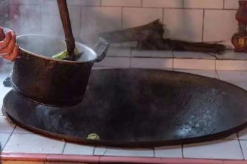 当今城郊的农家乐餐馆,都少不了几口大铁锅,乡下的大铁锅,更多的时候烹制乡下的五谷杂粮,即使是蔬菜,也是自家地里种出来的,就是用来烧火的柴草,也是从自家的地里弄来的。所以这大铁锅做出来的农家饭菜,就有了更多的乡土气息,带着浓浓泥土味和草木气息的饭菜,让我们的心,安宁、幸福。