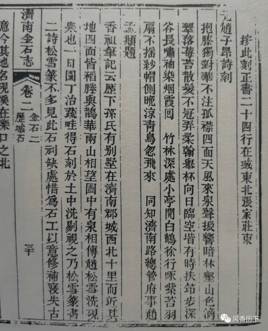书影:冯云鹓《济南金石志·历城石》元赵子昂诗刻