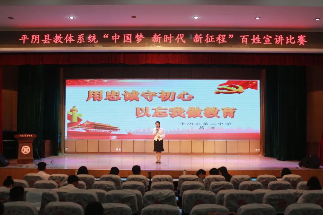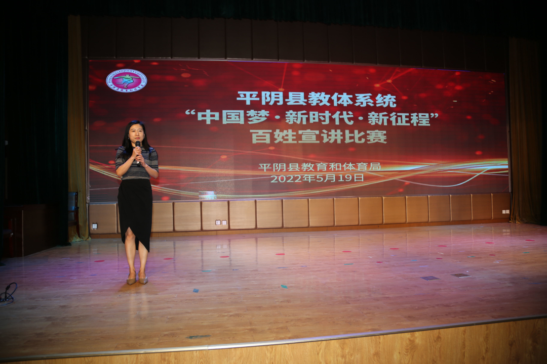 为迎接党的二十大胜利召开,集中展现教体系统在踏上实现第二个百年奋斗目标新征程上的新作为、新担当、新姿态,5月19日,平阴县教体局在平阴县实验学校举办教体系统“中国梦·新时代·新征程”百姓宣讲比赛。