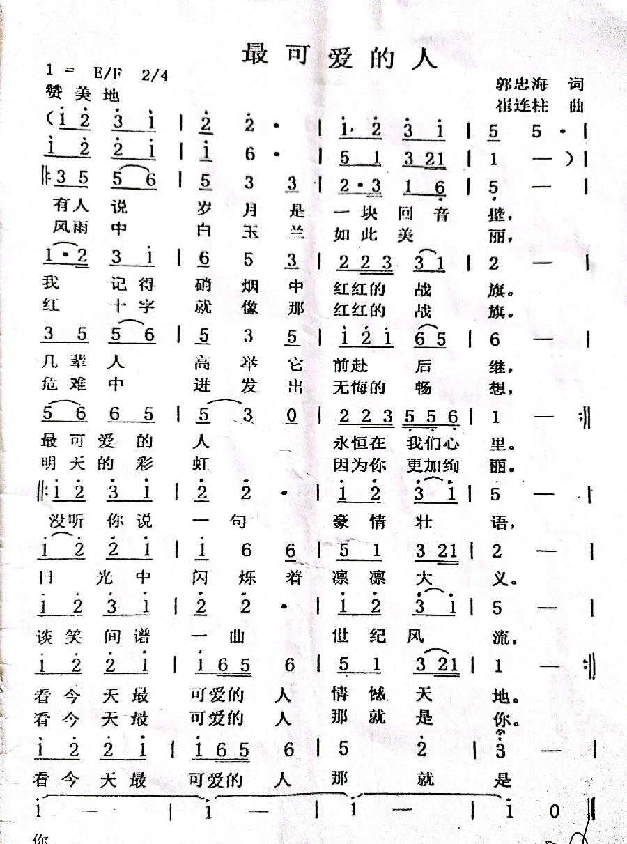 \ 歌曲《最可爱的人》郭忠海词——崔连柱曲演唱:姜志华高金石