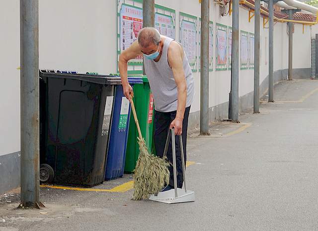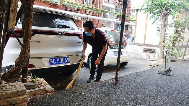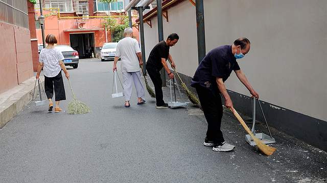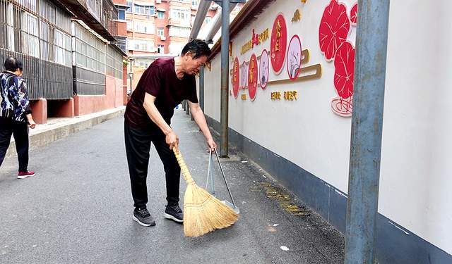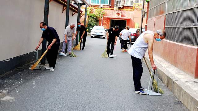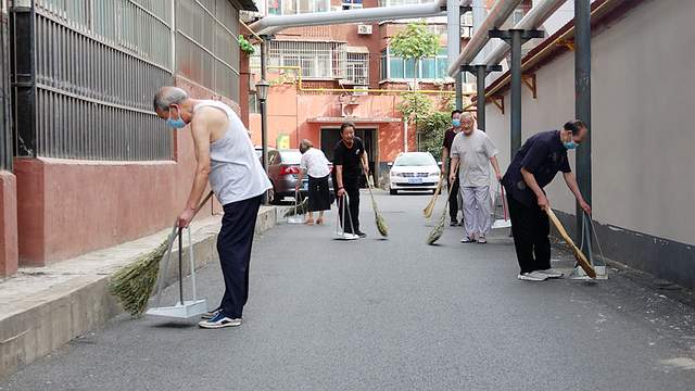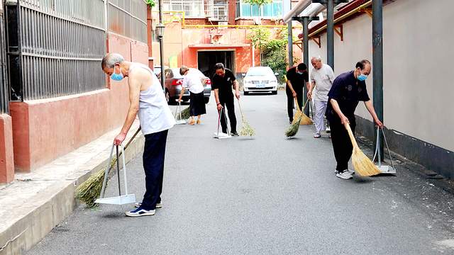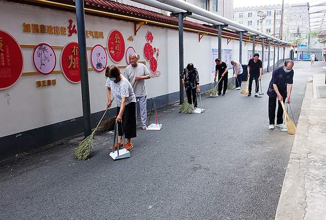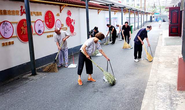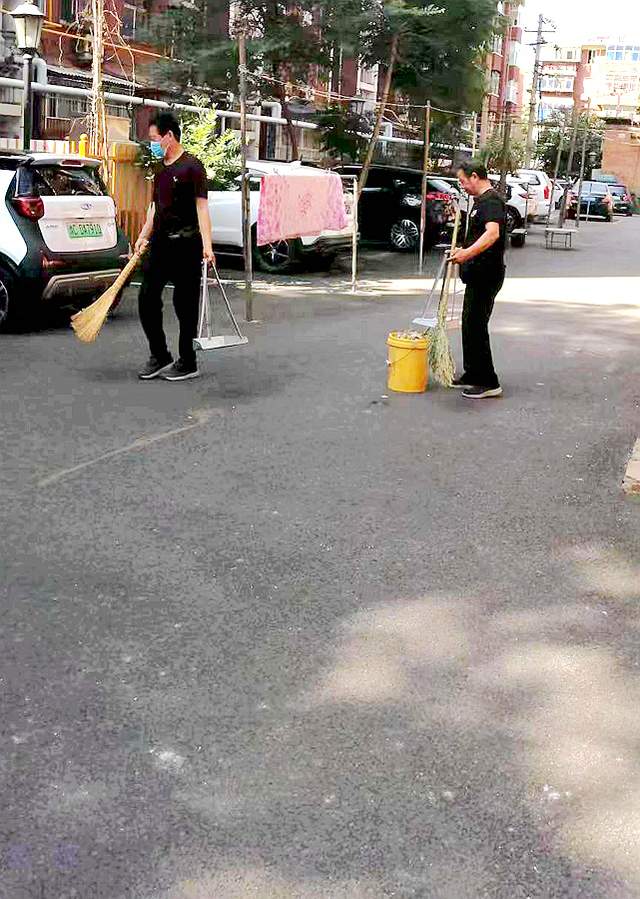 古仓街第二党支部在马小发书记的带领下组织党员志愿者正在小区参加洛阳市创卫保洁活动。