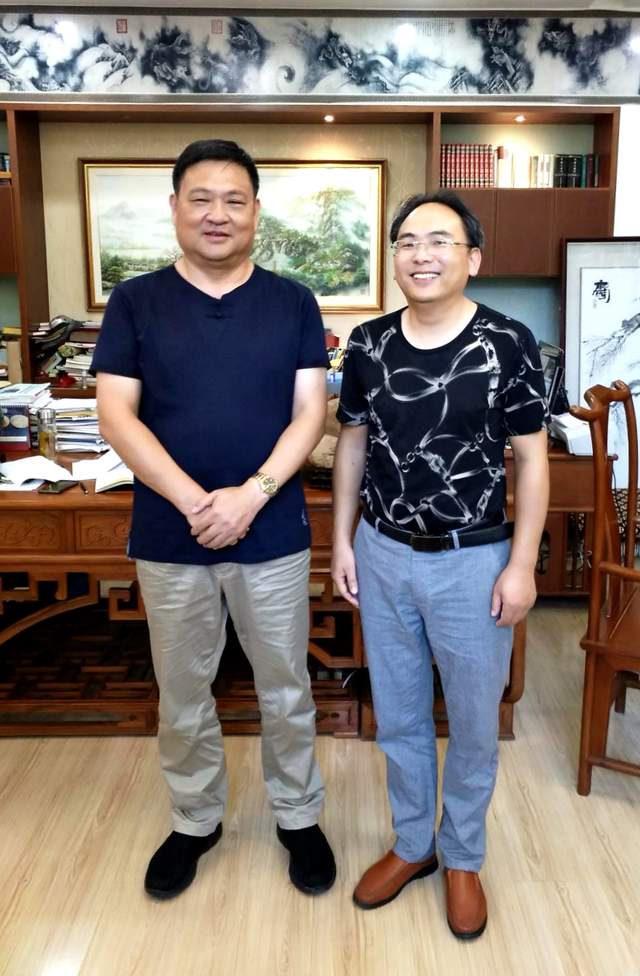 ↑2020年8月17日,中国道教协会副秘书长、江苏省道教协会名誉会长、茅山道院杨世华住持(左)与作者亲切座谈于茅山崇禧万寿宫